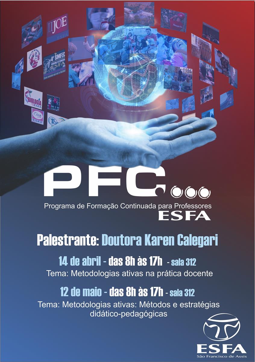 A ESFA, com a filosofia de sempre manter a qualidade de ensino e de acordo com a necessidade de qualificar ainda mais seu corpo docente está oferecendo o Programa de Formação Continuada para Professores.