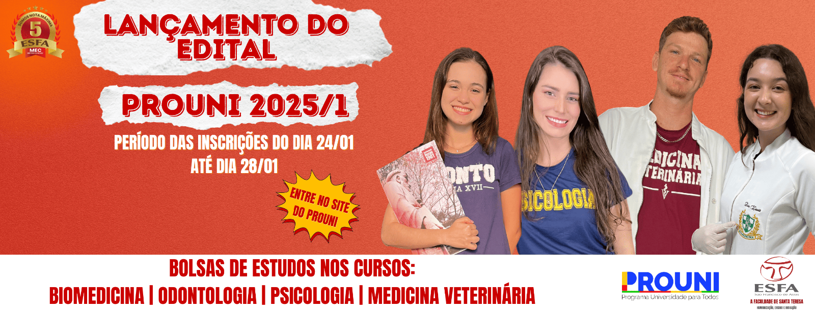 Santa Teresa–ES – A Faculdade de Santa Teresa (ESFA) anuncia a abertura das inscrições para o Processo Seletivo Permanente 2025/1.