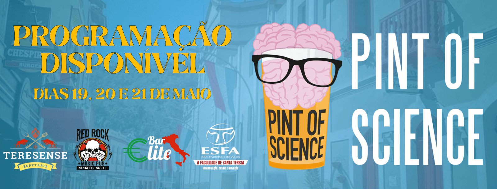 A cidade de Santa Teresa–ES, localizada na região das montanhas capixabas, será palco pela segunda vez consecutiva do Pint of Science, o maior festival mundial de divulgação científica em ambientes descontraídos. A edição 2025 do evento acontece nos dias 19, 20 e 21 de maio, simultaneamente em 169 cidades brasileiras e em mais de 25 países. Em Santa Teresa, as atividades ocorrerão na charmosa Rua do Lazer, nos espaços: Bar Elite, Red Rock e Espetaria Teresense.