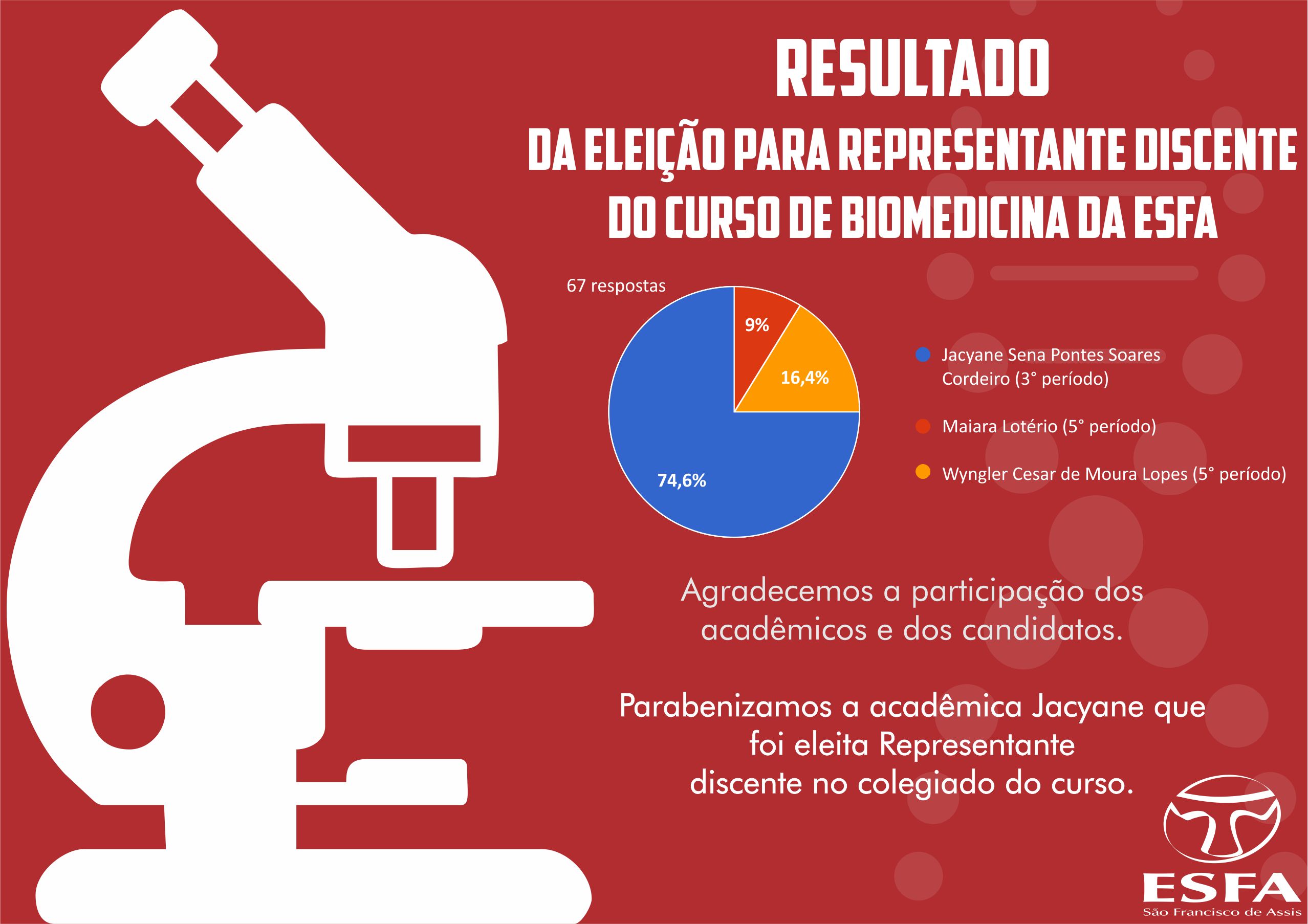 Resultado da eleição para representante discente do curso de Biomedicina da ESFA